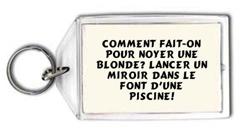 Comment fait-on pour noyer une blonde? Lancer un miroir dans le font d'une piscine! Porte Clé, specifications, descriptions, pricing updates and more desirable for this product!
