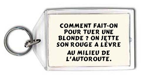 Comment fait-on pour tuer une blonde ? On jette son rouge a lèvre au milieu de l'autoroute. Porte Clé, specifications, descriptions, pricing updates and more desirable for this product!