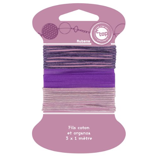 CTOP - Loisir créatif - Assortiment 2 fils coton + 1 ruban organza «camaïeu mauve» (3 x 1 m)