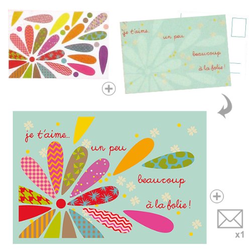 #Cette carte postale « Je t'aime à la folie » est à personnaliser avec ses gommettes. Créez ainsi une carte postale originale et ludique !